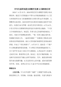 2024 年 6 月 13 日,2024 阿里巴巴全球数学竞赛公布决 赛名单,就读于江苏省涟水中等专业学校的服装设计与工艺 专业的姜萍以 93 分的成绩荣获全球排名第 12 位的成绩,入 围数学竞赛决赛,是该比赛举办以来首位闯进决赛的中专在 读生,也是前 30 名里唯一的女生引发全网关注。6 月 14 日, 江苏大学在社交媒体的热搜评论区向姜萍发出邀请: “江苏 大学欢迎你的加入,来这里,你将与自己的老师成为校友。” 同日,同济大学发博祝贺姜萍: “每一份努力都会有回报, 欢迎报考同济大学,一起来学高数!”常熟理工学院发文回 应恭喜姜萍取得佳绩。浙江大学苏德矿教授转发姜萍的相关 报道,并表示“欢迎来浙大”。6 月 15 日,涟水县一广场户 外大屏轮播姜萍获奖喜报,不少网民专程到现场拍照打卡。 关于姜萍中考 621 分却上中专的原因,江苏涟水中专党委书 记回应介绍,据姜萍自己讲,原因之一是当时她的姐姐,以 及两个要好的同学都在这所学校就读。另外,就是姜萍对服 装专业比较感兴趣,认为这里对自己的兴趣、爱好发展发挥 更有利。目前,姜萍正在为 6 月 22 日举行的决赛做准备。