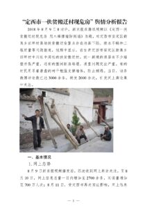 2018年8月9日8时许,新京报在腾讯视频以《定西一扶贫搬迁村现危房 用木棒撑墙防倒塌》为题,对定西市安定区新集乡田坪村易地扶贫搬迁安置点存在地基下陷、排水不畅和工程质量等问题报道,视频中显示,在甘肃定西市安定区新集乡田坪村中川社中湾社的扶贫搬迁村,统一新建的房屋有不少墙壁开裂严重,还有的整间新房垮塌,质量问题突出严重。有的村民用吊着磨盘的树干勉强支撑墙体,防止倾塌。当日,该条微博评论数已达3000余条,转发2000余次,引发网上舆论集中关注。