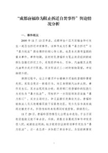 2009年11月13日早晨,成都市金牛区天回镇金华村发生一起恶性拆迁冲突事件,该事件成为引爆“暴力拆迁”与“暴力抗法”舆论博弈的核心导火索,也是本次舆情监测的重点事件。事件初期,该村村民唐福珍为阻止政府组织的破拆队伍推进拆迁工作,采取投掷砖头、石块、汽油瓶及点燃汽油等方式进行阻挠,双方形成近三小时的相持局面,冲突持续升级。