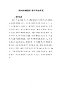 2011 年 4 月 22 日上午,湖南省株洲市荷塘区人民法院依法开展司法强拆工作,针对爬上楼顶的村民汪家正父子,工作人员安排铲土机搬运松土铺于楼下以防范坠落风险。在现场对话过程中,汪家正情绪突发失控,8 时 40 分许,其在往身上浇汽油时不慎摔倒并起火,随后从楼顶滚落至地面。现场工作人员立即上前扑火施救,期间遭到汪家正侄子二人抢夺灭火器和担架的阻拦,最终仍以最快速度完成灭火,并将汪家正送往医院救治。株洲市第一时间调集多方专家组建抢救小组,在省专家组指导下制定救治方案,联合省直中医院、株洲市一医院、湘雅二医院专家先后开展 19 次会诊。4 月 30日,汪家原因多器官功能衰竭,经全力抢救无效去世。事件发生后,相关信息迅速引发社会广泛关注,成为突发舆情热点。