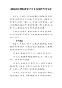 2012年5月4日,有网友微博爆料,称湖南高校职称评审评委在酒店开套间专为收钱,引发网友热议。湖南官方在事件曝光当日便介入调查,终止了当事人的评委资格。当事人所在高校也对其进行了暂时停职处理。事件发展后期,最高检介入,要求依法严查该事件背后的职务犯罪。从舆情应对角度看,湖南官方事发3小时内发现舆情,并于当天对当事人作出处理,体现出较强的舆情监测能力和危机应对能力。