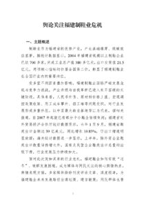 制鞋业作为福建省的优势产业,产业基础雄厚、规模效应显著。据统计数据显示,2004 年福建省规模以上制鞋企业已达 700 多家,完成工业总产值 380 多亿元,出口交货值 21.5亿元,两项核心指标均位居全国第二位,彰显了福建制鞋业在全国行业内的重要地位。受多重不利因素叠加影响,福建制鞋业面临严峻发展危机与竞争力挑战,产业升级与自我革新已进入刻不容缓的关键阶段。具体来看,人民币升值、原材料价格上涨、宏观调控政策收紧、用工成本攀升、招工难等问题交织,对行业发展形成多重挤压。以中国最大鞋业基地晋江为代表,据相关报道,自 2007 年起就已有部分中小鞋企陆续倒闭;福建省对外贸易经济合作厅统计数据显示,当年 1 至 9 月,福建省鞋类出口金额达 39 亿美元,同比增长 10.83%,但出口增速明显放缓;海关统计数据进一步显示,上半年,除外资企业鞋类出口数量保持增长外,国有及民营企业鞋类出口总量均出现下滑,行业发展压力持续加大。面对此次突如其来的行业危机,福建鞋企如何有效“过冬”、破解发展困境,成为媒体与网民关注的核心舆情热点。舆情表现方面,多家媒体纷纷刊发评论文章、深度报道,为福建鞋企未来发展路径出谋划策、建言献策;网民群体也普遍关注此类出口导向型中小企业的生存状况,舆论共识高度集中,普遍认为福建制鞋业摆脱危机的关键在于加快产业升级,通过提质增效、转型创新实现可持续发展,相关讨论持续推动舆情发酵。