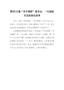 近日,白象“多半袋面”“多半桶面”系列产品引发广 泛争议。多位网友发现,包装上醒目的“多半”二字,竟为 白象食品注册的商标,而非直观理解的“分量多半”。 从消费者反馈的图片来看,产品包装上“多半袋面”“多 半桶面”旁,“大分量,倍满足”的标语十分显眼,而“多 半”右上角的“®”注册商标标识却并不起眼。白象食品官 方客服人员回应称,“‘多半’确实是商标,产品具体克重 以包装上显示的为准”。但这一解释难以平息消费者的质疑, 许多人认为这是在“玩文字游戏”,误导消费者。