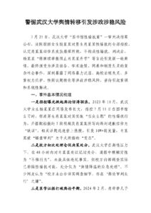 7 月 25 日,武汉大学“图书馆性骚扰案”一审判决结果公布,法院驳回女生杨某某对男生肖某某性骚扰的全部指控,认定肖某某动作系皮肤瘙痒所致,不构成性骚扰。判决后,杨某某“将继续举报阻止肖某某升学”等言论引发新一轮舆情,最终演变为涉及诬告、学术造假、网暴和制度失灵的复杂社会事件,深刻暴露了网络暴力泛滥、高校治理失灵、多重权力庇护、性别议题极化等涉政涉稳风险,亟待引起重视和系统性解决。