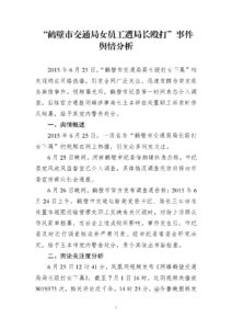 2015年6月25日,“鹤壁市交通局局长殴打女下属”相关视频在网络热播,引发全网广泛关注,迅速发酵为突发政务舆情事件。视频曝光后,鹤壁市纪委第一时间表态介入调查,后续官方通报明确涉事局长王本祥在处置职工诉求时作风粗暴,给予其党内警告处分。